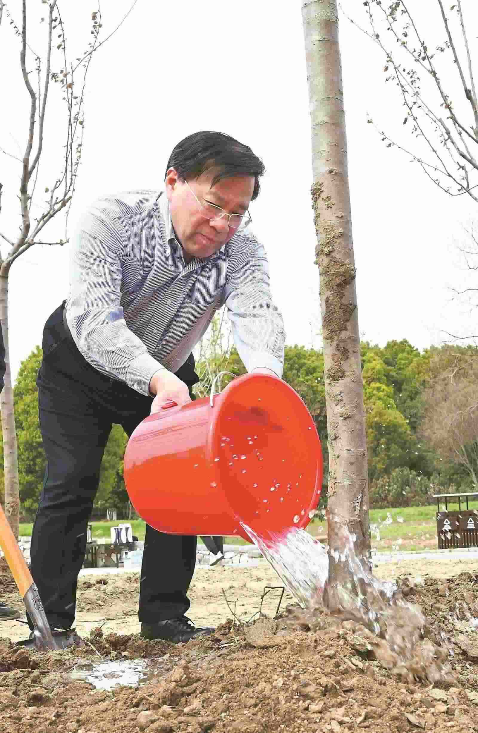 巢湖沿岸草木萌發(fā)、水清岸綠。下午3時左右,韓俊、王清憲、虞愛華等安徽省領(lǐng)導(dǎo)來到肥東縣六家畈紅石咀公園義務(wù)植樹點(diǎn)。在植樹現(xiàn)場,省領(lǐng)導(dǎo)詳細(xì)了解綠美江淮行動有關(guān)情況和全省造林綠化工作。韓俊指出,綠色發(fā)展是高質(zhì)量發(fā)展的底色,新質(zhì)生產(chǎn)力本身就是綠色生產(chǎn)力。各級各部門要深入學(xué)習(xí)貫徹習(xí)近平生態(tài)文明思想和習(xí)近平總書記關(guān)于安徽工作的重要講話重要指示精神,堅(jiān)持生態(tài)優(yōu)先、綠色發(fā)展,扎實(shí)開展綠美江淮行動,持續(xù)深化林長制改革,深入實(shí)施重要生態(tài)系統(tǒng)保護(hù)和修復(fù)重大工程,統(tǒng)籌推進(jìn)人工造林、封山育林、退化林修復(fù)、松材線蟲病防控等工作,大力發(fā)展林下經(jīng)濟(jì)和林業(yè)產(chǎn)業(yè),加快推進(jìn)“以竹代塑”,培育壯大生態(tài)旅游、森林康養(yǎng)等新興業(yè)態(tài),做到生態(tài)保護(hù)和生態(tài)旅游相得益彰,積極推動發(fā)展方式綠色低碳轉(zhuǎn)型,努力將生態(tài)高顏值轉(zhuǎn)化為經(jīng)濟(jì)高價值,加快打造經(jīng)濟(jì)社會發(fā)展全面綠色轉(zhuǎn)型區(qū)。