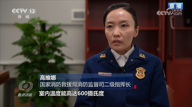 國(guó)家消防救援局消防監(jiān)督司二級(jí)指揮長(zhǎng)高維娜:“30秒鐘就能達(dá)到燃燒狀態(tài),3分鐘火焰中心部位的溫度能達(dá)到1200攝氏度。如果是在室內(nèi),室內(nèi)溫度能高達(dá)600攝氏度,會(huì)產(chǎn)生大量有毒煙氣。目前,我們國(guó)家沒(méi)有專門針對(duì)電動(dòng)自行車火災(zāi)撲救的滅火藥劑?!?/p>