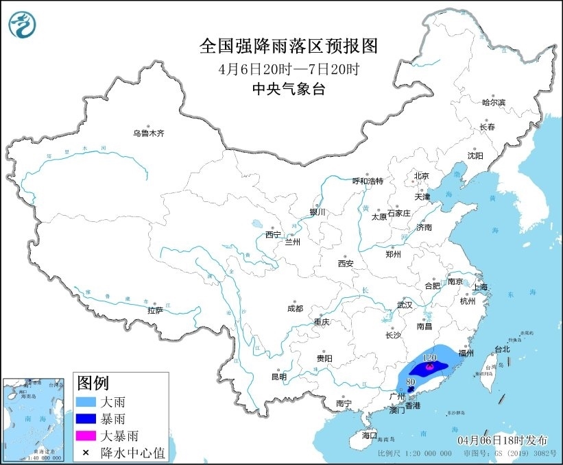 預(yù)計(jì),4月6日20時(shí)至7日20時(shí),江西南部、福建中南部、廣東中東部等地的部分地區(qū)有大到暴雨,其中,江西南部、福建南部、廣東東北部等地局地有大暴雨(100~120毫米)。上述部分地區(qū)伴有短時(shí)強(qiáng)降水(最大小時(shí)降雨量20~40毫米,局地可超過50毫米),局地有雷暴大風(fēng)或冰雹等強(qiáng)對(duì)流天氣。
