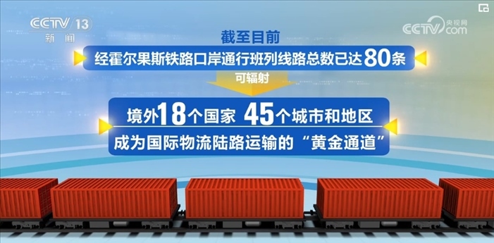 記者從霍爾果斯鐵路口岸了解到,2016年以來到2024年3月底,經(jīng)霍爾果斯海關(guān)監(jiān)管的中歐(中亞)班列總量已超過3.5萬列,通行班列線路總數(shù)達80條,可輻射境外18個國家、45個城市和地區(qū)。