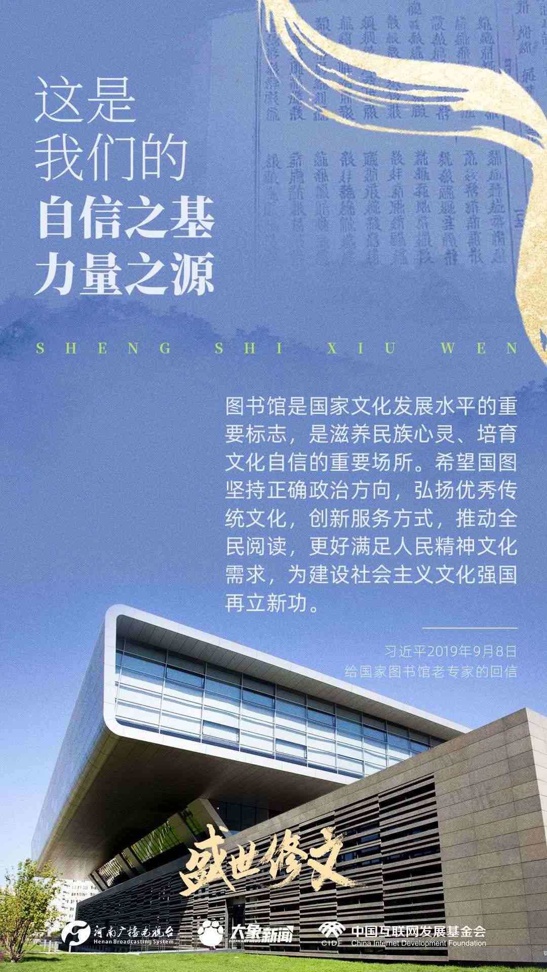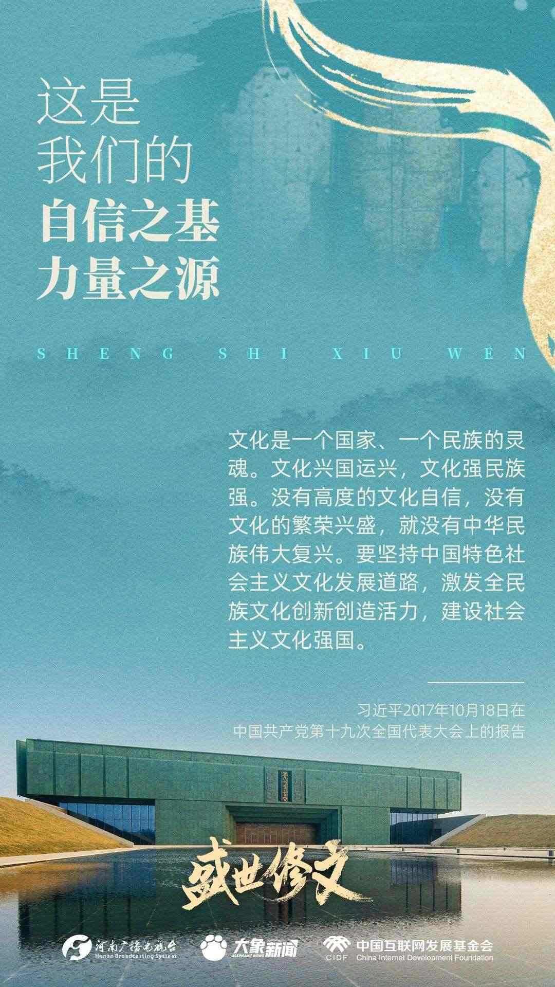 今天推出:習(xí)近平文化思想金句之《盛世修文|這是我們的自信之基、力量之源》。