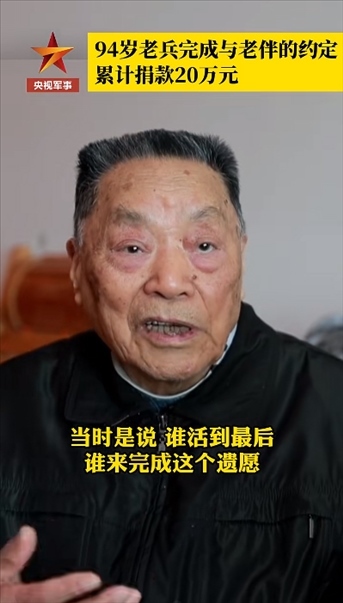 94歲老兵曾讓泉,78歲簽下捐贈(zèng)眼角膜協(xié)議,85歲開始捐款,至今共計(jì)20萬元。曾讓泉說,老伴2014年走了,當(dāng)時(shí)約定誰活到最后誰來完成每年省下錢來捐款這個(gè)遺愿。
