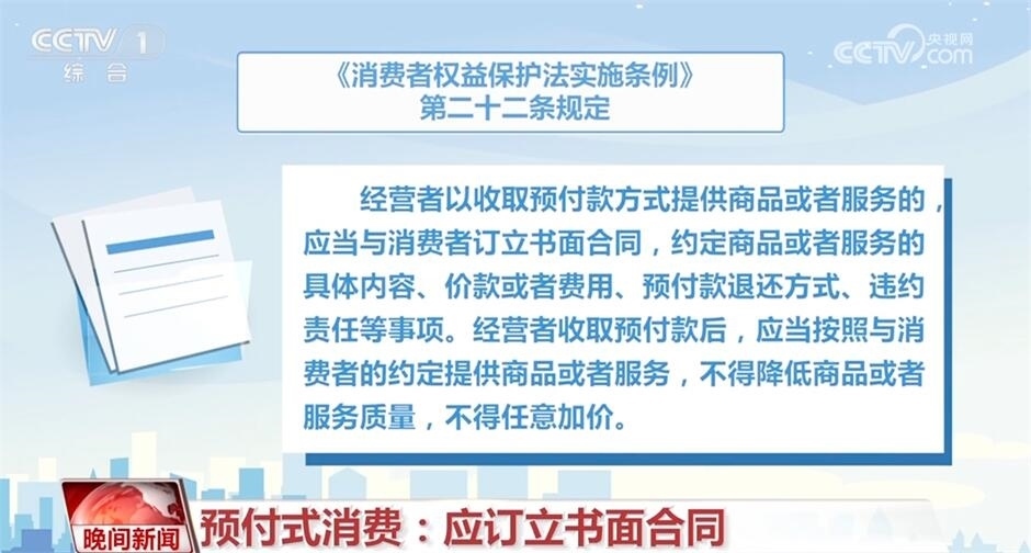 《消費者權(quán)益保護(hù)法實施條例》第二十二條規(guī)定,經(jīng)營者以收取預(yù)付款方式提供商品或者服務(wù)的,應(yīng)當(dāng)與消費者訂立書面合同,約定商品或者服務(wù)的具體內(nèi)容、價款或者費用、預(yù)付款退還方式、違約責(zé)任等事項。經(jīng)營者收取預(yù)付款后,應(yīng)當(dāng)按照與消費者的約定,提供商品或者服務(wù),不得降低商品或者服務(wù)質(zhì)量,不得任意加價。