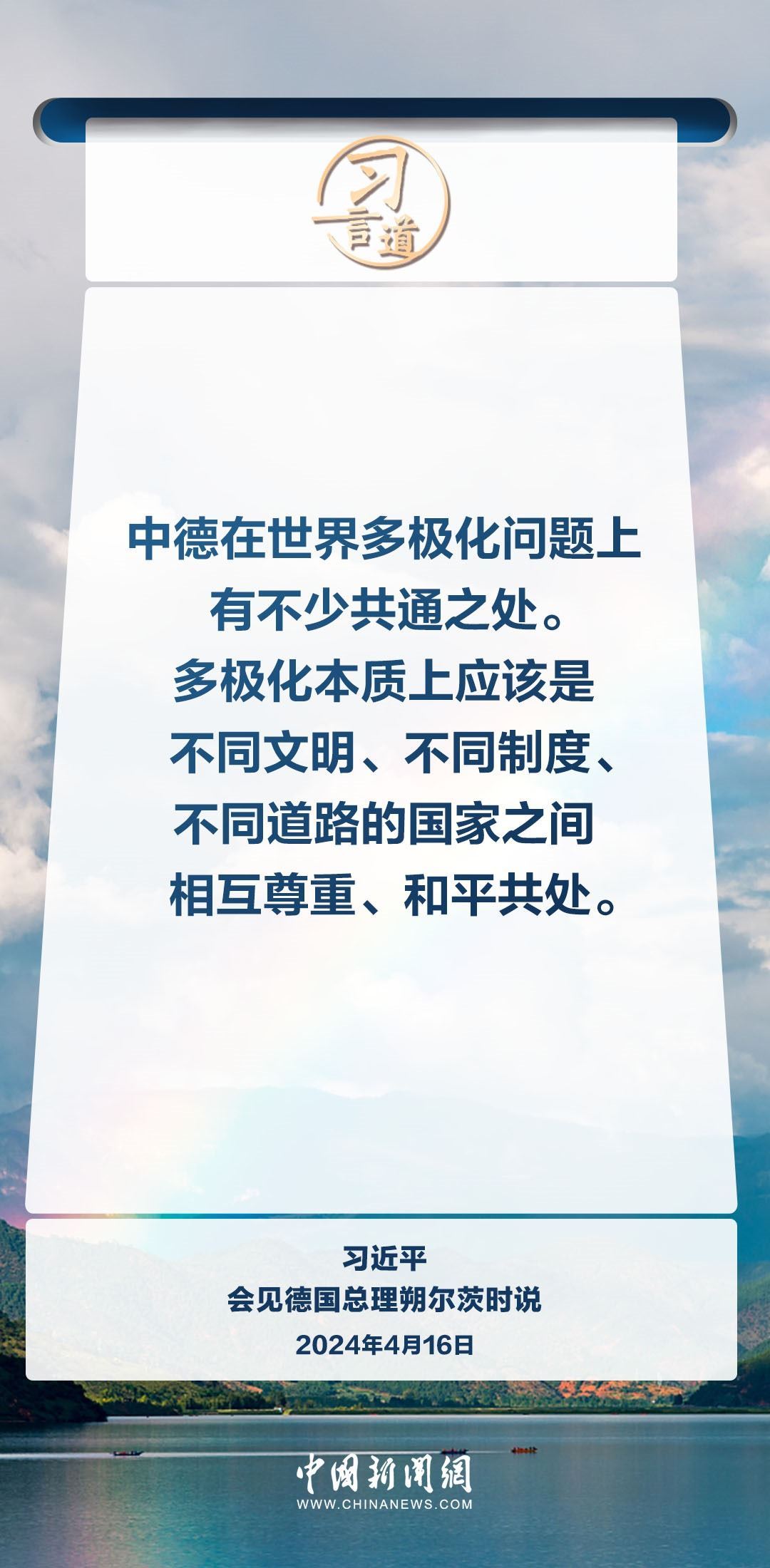 4月16日上午,國家主席習近平在北京釣魚臺國賓館會見德國總理朔爾茨。習近平指出——