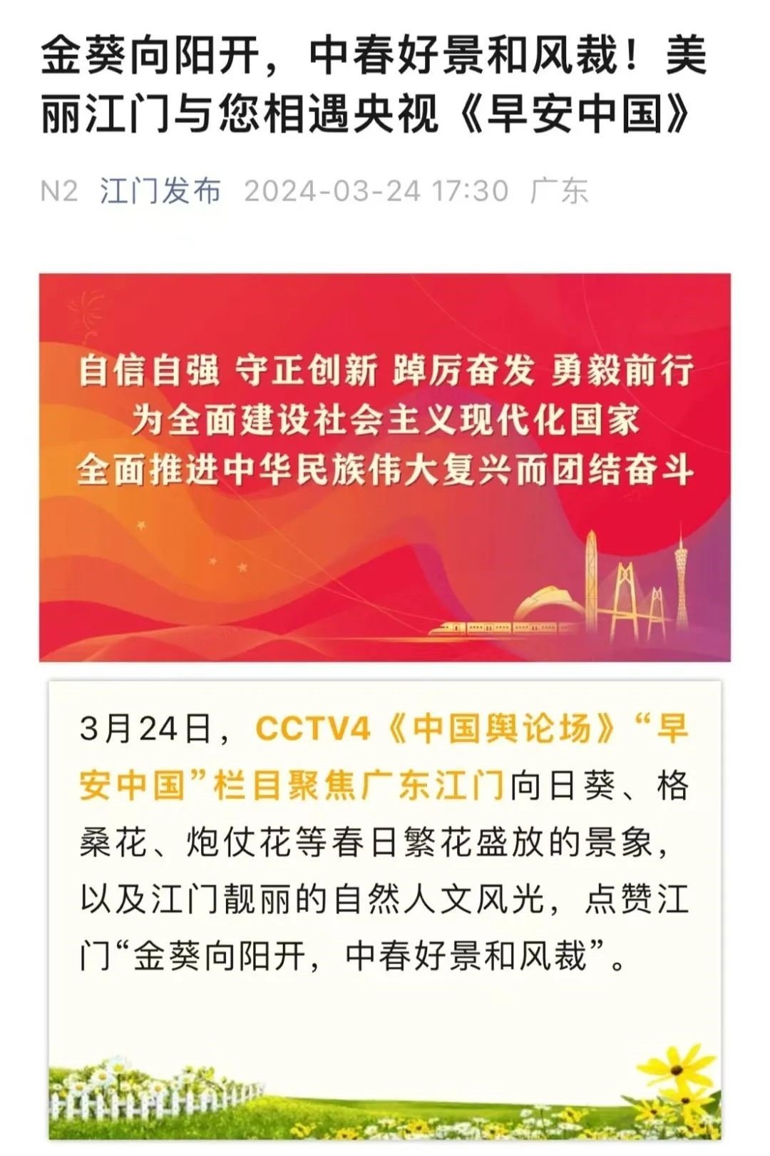“《早安中國》入人心,美麗河山春色濃。”