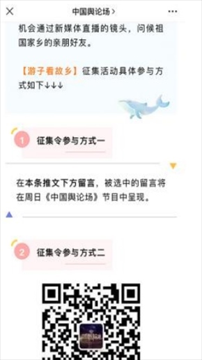主創(chuàng)團隊充分考慮到這些背井離鄉(xiāng)、愛國戀家的海外華僑華人的迫切需要,著力突出《早安中國》的互動性,將更多時間、更多機會給到他們。網(wǎng)友希望看到祖國的哪些美景,哪個地方呼聲最高,哪個地方就成為了《中國輿論場》大小屏直播內容的一個節(jié)目版塊。