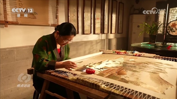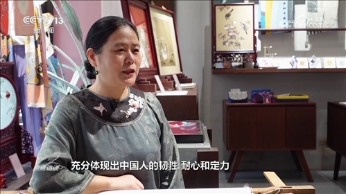 盧建英:“當(dāng)時(shí)我在繡一幅《桃花太平鳥(niǎo)圖》,習(xí)近平總書(shū)記走到了我的繃架前。他說(shuō)你好,很親切,很和藹,看得非常仔細(xì)。他說(shuō)中華文化的傳承力有多強(qiáng),通過(guò)這個(gè)蘇繡可以看出來(lái),像這樣的功夫充分體現(xiàn)出中國(guó)人的韌性、耐心和定力,這是中華民族精神的一部分,能得到總書(shū)記的認(rèn)可,真的是倍感榮耀。”