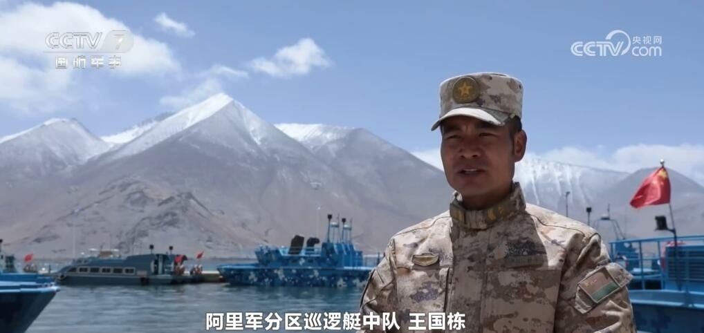 央視網(wǎng)消息:無論是白天黑夜,還是嚴(yán)寒酷暑,總有那么一群人,在練兵場(chǎng)上揮汗如雨,時(shí)刻準(zhǔn)備著;無論是邊關(guān)海島,還是遠(yuǎn)海大洋,總有那么一群人,全時(shí)在哨位上,默默守護(hù)萬家燈火?!拔逡弧碧貏e節(jié)目《強(qiáng)軍路上奮斗者》,今天(5月3日)的關(guān)鍵詞是:堅(jiān)守。我們首先把鏡頭對(duì)準(zhǔn)雪域邊關(guān)。班公湖位于祖國西部邊陲,像一顆碧藍(lán)的寶石,鑲嵌在高原雪山,阿里軍分區(qū)巡邏艇中隊(duì)就駐守在那里,艇隊(duì)官兵也被大家親切地稱為“昆侖水兵”。下面,就帶您認(rèn)識(shí)一位守護(hù)“水上國門”的“昆侖水兵”——王國棟。