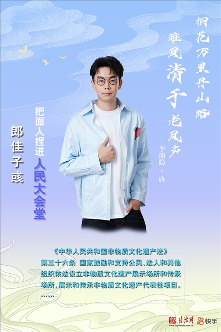 郎佳子彧畢業(yè)于北京大學藝術(shù)學院,國家級非遺“北京面人郎”第三代傳承人。他自幼受家庭熏陶,3歲隨父親郎志春學藝,至今已20多年。他嘗試用老手藝做新題材,同時探索利用短視頻、直播等新媒介展示傳統(tǒng)技藝,讓更多人了解并愛上面塑。
