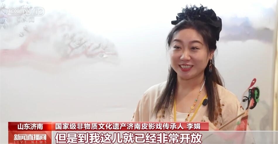 國家級非物質(zhì)文化遺產(chǎn)濟南皮影戲傳承人李娟稱:“濟南皮影世世代代傳承,傳到我這兒是五代了,過去叫傳男不傳女,但是到我這兒就已經(jīng)非常開放,女孩也可以學(xué)皮影。我就想實現(xiàn)我的夢想,讓更多的女孩子有機會接觸到皮影,在濟南這么美麗的百花洲,我們就在這里成立了一個皮影女團,有很多年輕的女孩通過學(xué)習(xí)皮影,甚至看演出的時候她只是一個觀眾,她發(fā)現(xiàn)皮影非常有意思,就非常希望能夠加入到我們團隊里來,幫著我們一起去傳承發(fā)展皮影。”