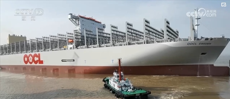 央視網(wǎng)消息:5月7日,又一艘全球最大裝箱量級(jí)的集裝箱船在海事部門的護(hù)航下,從長(zhǎng)江江蘇南通段出江試航。此次,試航集裝箱船長(zhǎng)399.99米、寬61.3米,滿載時(shí)相當(dāng)于240多列火車的裝載量。