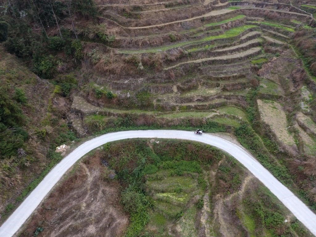 ?↑在廣西東蘭縣隘洞鎮(zhèn)板康村,黃乜鮮用三輪車載著兒子黃必華行駛在上學(xué)的路上(2018年2月26日攝)。