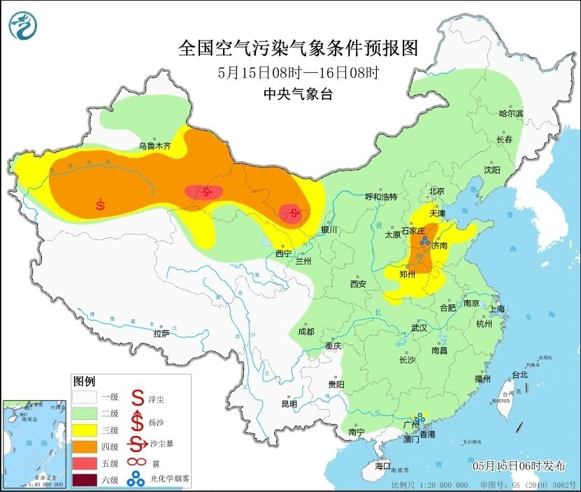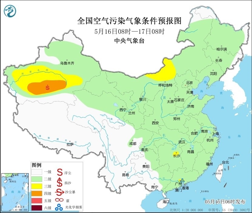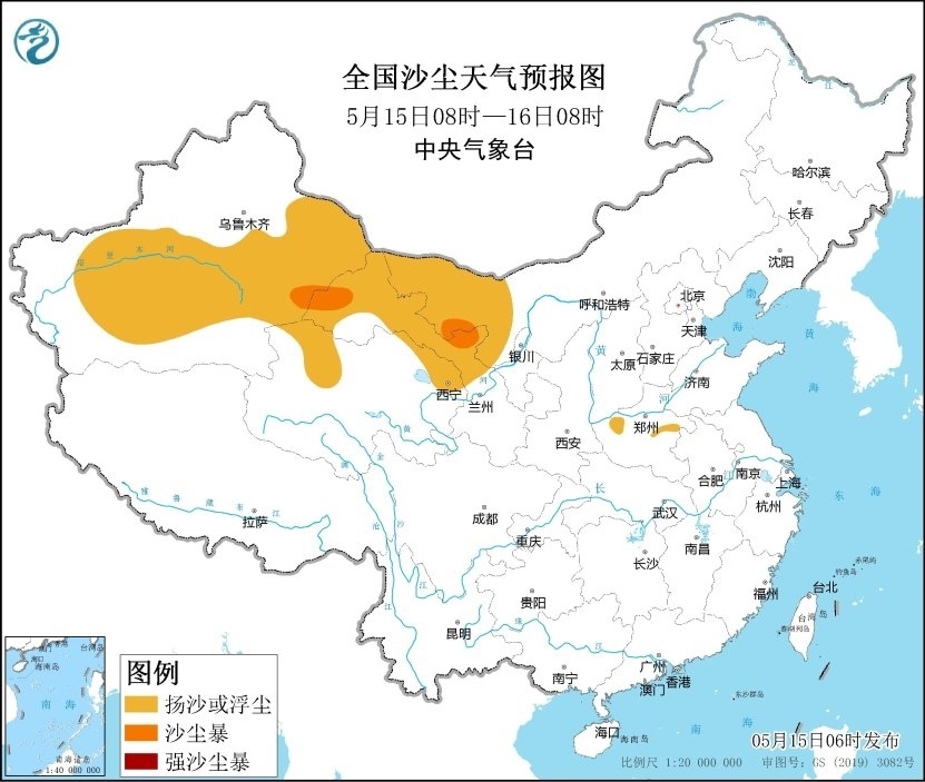 央視網(wǎng)消息:據(jù)中央氣象臺網(wǎng)站消息,預(yù)計(jì),5月15日08時至16日08時,新疆南部和東部、甘肅西部、內(nèi)蒙古西部、青海北部以及河南中部等地有揚(yáng)沙或浮塵天氣,其中新疆東部、甘肅西部、內(nèi)蒙古西部等地局地有沙塵暴,中央氣象臺5月15日06時繼續(xù)發(fā)布沙塵暴藍(lán)色預(yù)警。