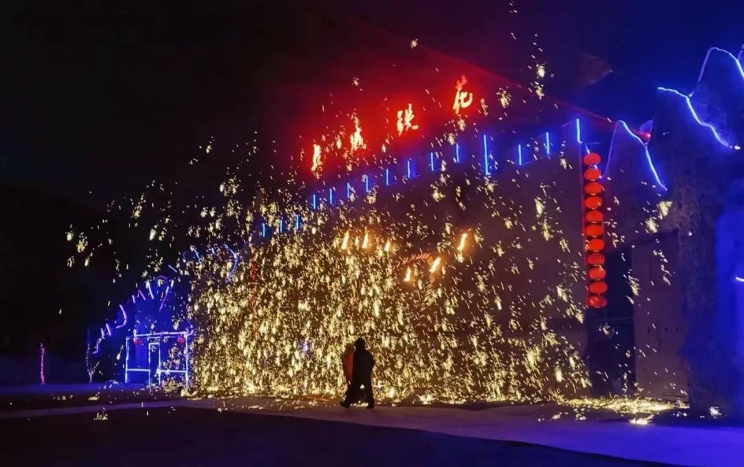 “長(zhǎng)城鐵花”是長(zhǎng)城腳下的人們?cè)谵r(nóng)閑時(shí)表演來(lái)祭祀、娛樂(lè)、祈求風(fēng)調(diào)雨順、生活美滿的一種民間文藝活動(dòng)。當(dāng)鐵水溫度達(dá)到1600至1800攝氏度時(shí),用木勺擊打鐵水,鐵花四濺,猶如天女散花,甚是絢麗壯觀。