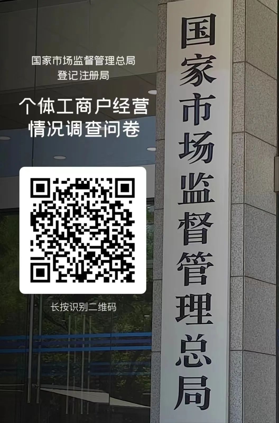 您好!為更好地了解個(gè)體工商戶生存發(fā)展?fàn)顩r,摸清個(gè)體工商戶發(fā)展中的難點(diǎn)痛點(diǎn)堵點(diǎn)問(wèn)題,傾聽大家對(duì)包括市場(chǎng)監(jiān)管部門在內(nèi)的各部門、各方面建議,推動(dòng)在支持個(gè)體工商戶穩(wěn)信心、渡難關(guān)、謀發(fā)展上定實(shí)策、出實(shí)招,作為全國(guó)個(gè)體工商戶的“娘家人”,我們專門設(shè)計(jì)了這份調(diào)查問(wèn)卷。熱切地期盼您能抽出寶貴時(shí)間填寫問(wèn)卷,留下您寶貴的意見建議。