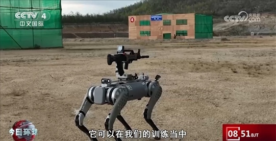 中方參演隊員陳威介紹:“我現(xiàn)在操作的是B1四足機器狗,它可以在我們的訓練當中代替我們的隊員先行進行偵察和發(fā)現(xiàn)敵人后火力打擊,是我們城市攻防作戰(zhàn)中的新成員?!?/p>
