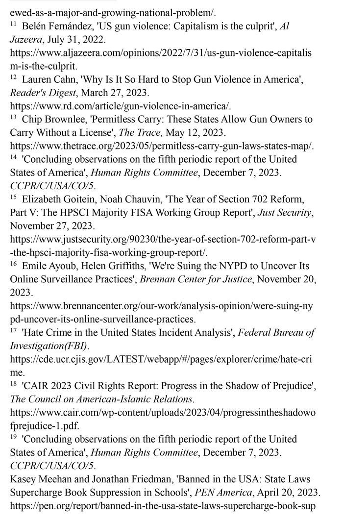政府濫用權(quán)力監(jiān)控公民隱私。聯(lián)合國人權(quán)事務(wù)委員會指出,美國《涉外情報監(jiān)視法》第702條的范圍過于寬泛,該法不僅允許美國執(zhí)法人員監(jiān)視外國人的電子通信,執(zhí)法人員還可能利用法律漏洞在沒有搜查令的情況下獲取大量美國公民的通訊信息(即“后門搜查”),并且缺乏明確透明的監(jiān)督機制。(注14)美國眾議院情報委員會2023年11月16日發(fā)布的報告顯示,美國聯(lián)邦調(diào)查局將《涉外情報監(jiān)視法》第702條規(guī)定轉(zhuǎn)用于進行國內(nèi)監(jiān)控,“廣泛而持續(xù)地”監(jiān)控國會議員、國會競選活動捐助者以及反種族主義抗議者的通訊。(注15)布倫南司法中心網(wǎng)站2023年11月20日報道,十幾年來,紐約警察局濫用社交媒體從事非法活動,包括監(jiān)視公共集會、在沒有證據(jù)的情況下跟蹤公民個人及其聯(lián)系人等,而這些行為并未受到監(jiān)督和問責。(注16)