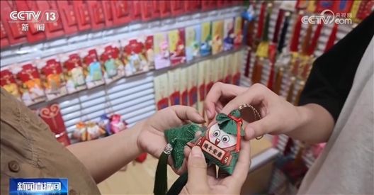 央視網(wǎng)消息:臨近端午節(jié),在浙江義烏,帶有端午元素的五彩繩、手鏈、香囊等各色商品銷售火爆,其中一些蘊(yùn)含龍?jiān)?、好寓意的商品更是受到市場的歡迎。