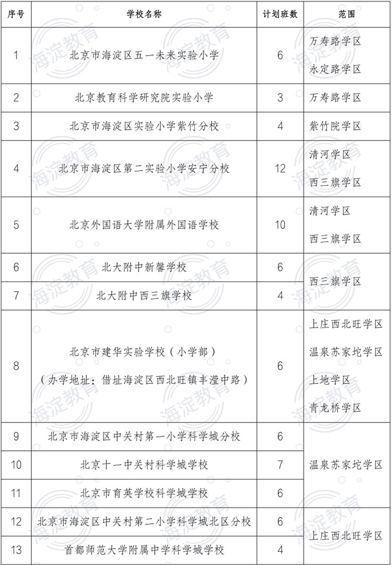 持有海淀區(qū)《學(xué)齡人口信息采集表》的適齡兒童且戶口所在地或者實(shí)際居住地屬于萬(wàn)壽路學(xué)區(qū)、永定路學(xué)區(qū)、羊坊店學(xué)區(qū)、八里莊學(xué)區(qū)、紫竹院學(xué)區(qū)、海淀學(xué)區(qū)、中關(guān)村學(xué)區(qū)、北太平莊學(xué)區(qū)、上地學(xué)區(qū)、青龍橋?qū)W區(qū)、清河學(xué)區(qū)、西三旗學(xué)區(qū)、上莊西北旺學(xué)區(qū)、溫泉蘇家坨學(xué)區(qū)之一,對(duì)應(yīng)范圍內(nèi)的兒童僅可填報(bào)一所公辦中學(xué)舉辦小學(xué)部及新建小學(xué)。
