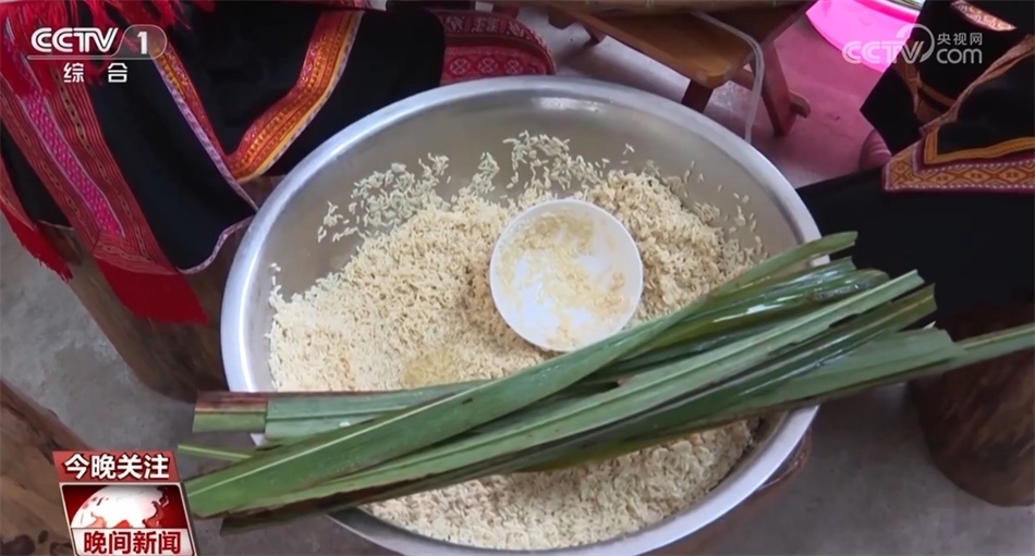 這樣的粽子,造型是不是很像一艘龍舟呢?在廣西賀州市昭平縣仙回瑤族鄉(xiāng)古盤村,村民們將提前準備好的黃茅草平鋪在簸箕上,放入浸泡好的糯米,包裹成龍舟形狀,再放入大鍋中慢慢蒸煮。煮熟的黃茅粽表皮由綠色變?yōu)辄S褐色。