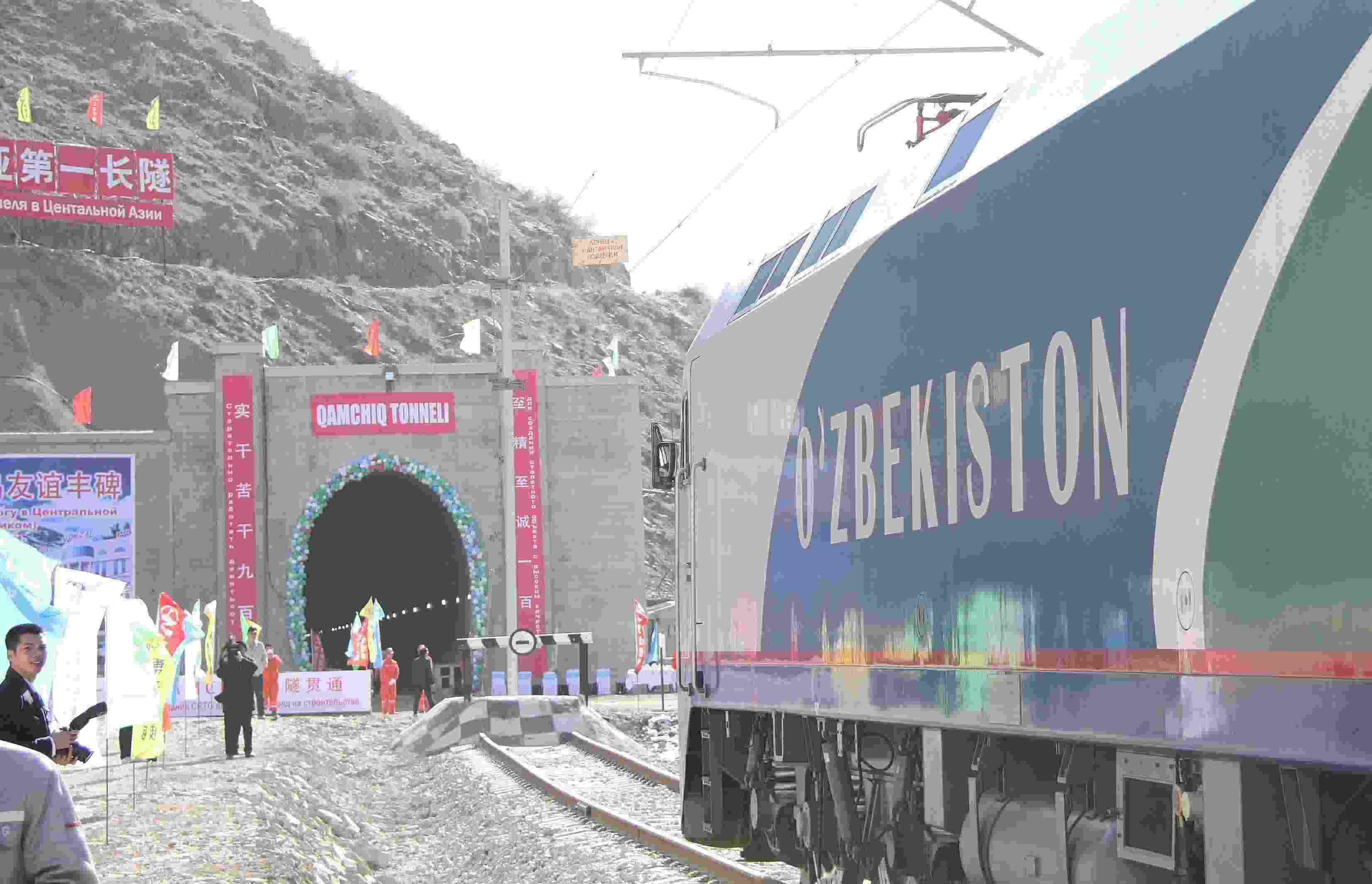 △ 2016年2月27日,一列專列停在烏茲別克斯坦安格連至琶布鐵路甘姆奇克隧道進(jìn)口。甘姆奇克隧道是中吉烏鐵路的重要一環(huán),對促進(jìn)烏茲別克斯坦經(jīng)濟(jì)社會發(fā)展和共建“一帶一路”倡議的實(shí)施具有重大意義。