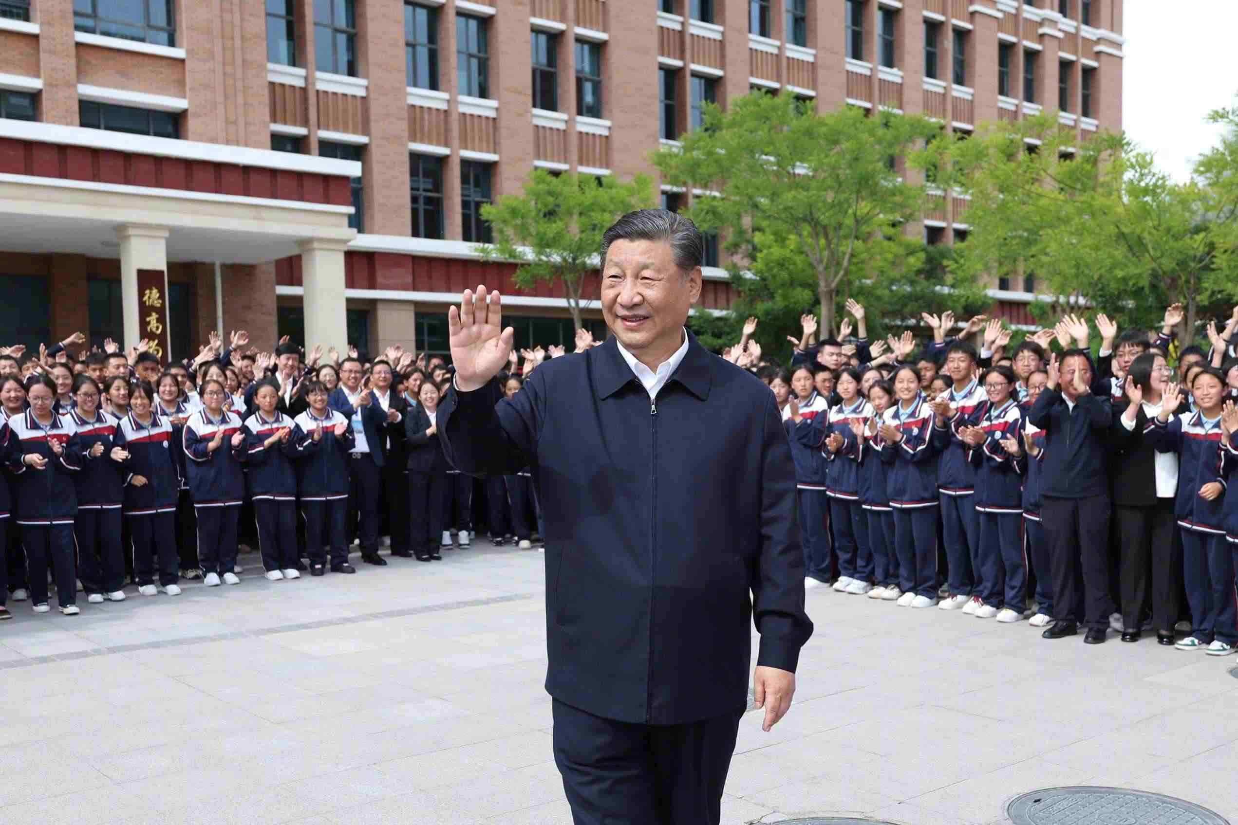 2024年6月18日下午,在青??疾煺{(diào)研的習(xí)近平總書記來到果洛西寧民族中學(xué),了解當(dāng)?shù)厣钊胪七M(jìn)教育工作東西部協(xié)作和對口支援等情況。