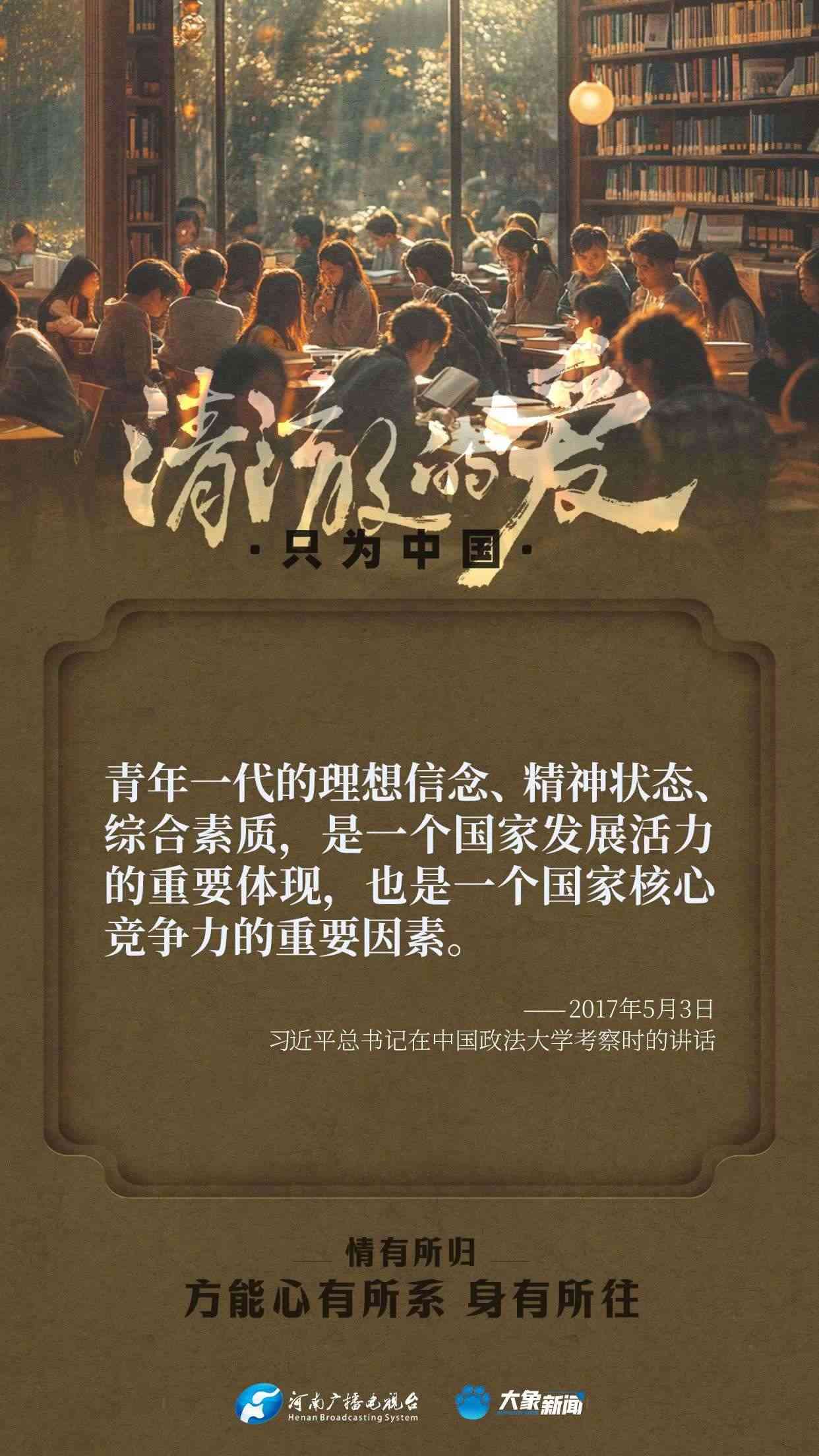 習(xí)近平總書記對廣大青年寄予厚望。黨的十八大以來,他多次來到青年中間,同大家談人生、話理想,鼓勵青年人心系祖國,志存高遠(yuǎn),腳踏實地,在奮斗中創(chuàng)造精彩人生,為祖國和人民貢獻(xiàn)青春和力量。