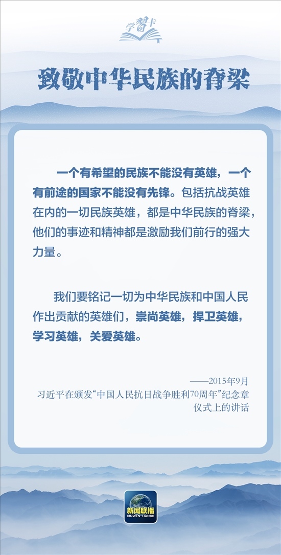 “對(duì)一切為國(guó)家、為民族、為和平付出寶貴生命的人們,不管時(shí)代怎樣變化,我們都要永遠(yuǎn)銘記他們的犧牲和奉獻(xiàn)?!?/p>