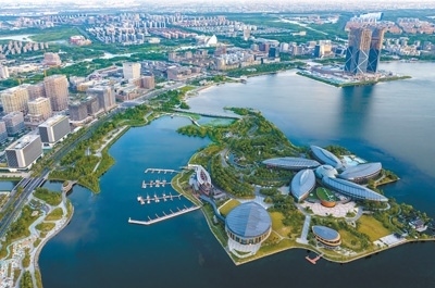 擴(kuò)大開放上海自貿(mào)試驗(yàn)區(qū)臨港新片區(qū)滴水湖畔,鱗次櫛比的樓宇拔地而起。計(jì)海新攝(影像中國)