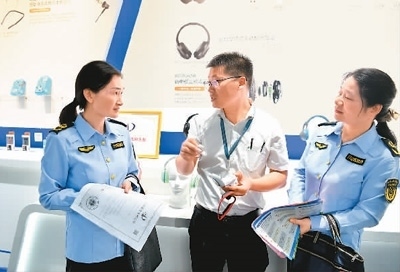 湖北省咸寧市通城縣立足企業(yè)創(chuàng)新創(chuàng)造,持續(xù)優(yōu)化營(yíng)商環(huán)境。目前,該縣已建成省級(jí)知識(shí)產(chǎn)權(quán)保護(hù)站2個(gè),幫助企業(yè)更好解決專利服務(wù)、知識(shí)產(chǎn)權(quán)融資等需求。圖為該縣經(jīng)濟(jì)開發(fā)區(qū)一家民營(yíng)企業(yè)內(nèi),市場(chǎng)監(jiān)管工作人員在了解企業(yè)專利產(chǎn)品生產(chǎn)狀況。劉建平攝(人民視覺)
