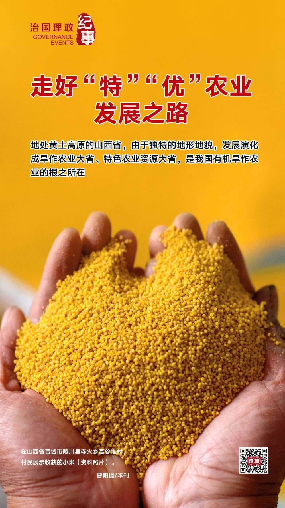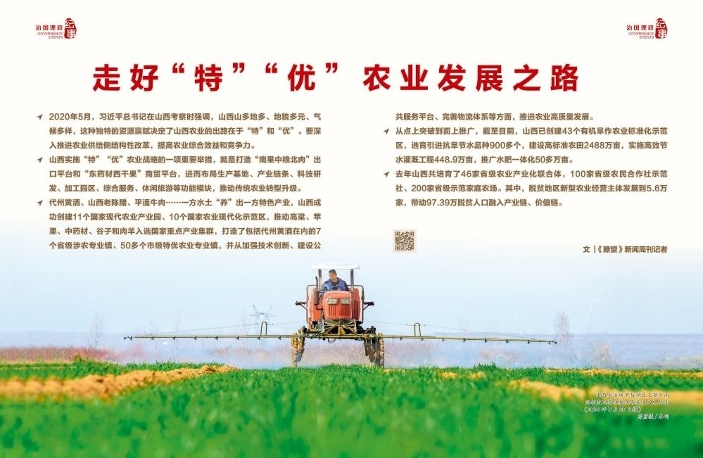 ◇2020年5月,習近平總書記在山西考察時強調(diào),山西山多地多、地貌多元、氣候多樣,這種獨特的資源稟賦決定了山西農(nóng)業(yè)的出路在于“特”和“優(yōu)”。要深入推進農(nóng)業(yè)供給側(cè)結(jié)構(gòu)性改革,提高農(nóng)業(yè)綜合效益和競爭力。
