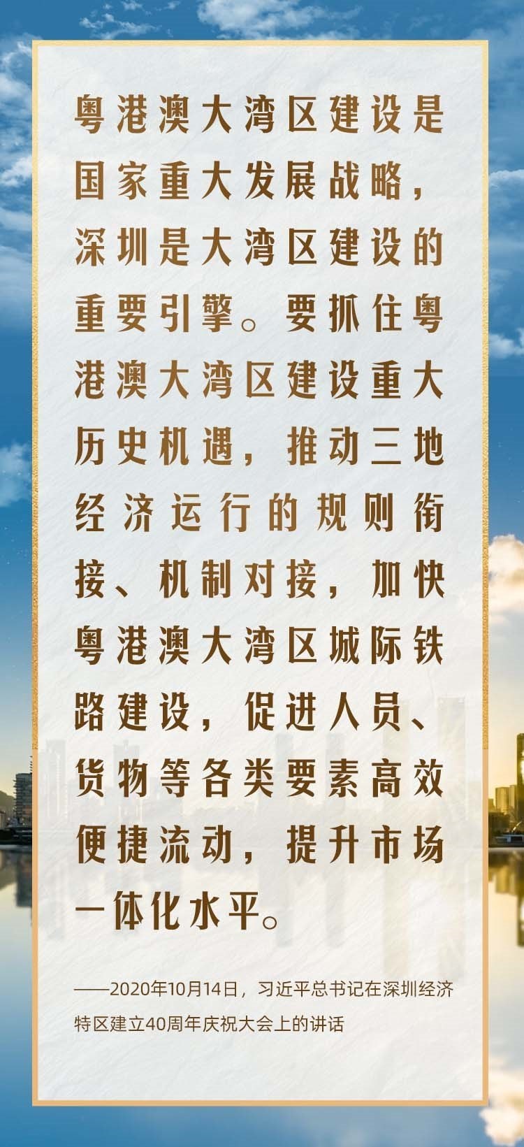 2023年4月,習近平總書記在視察廣東時指出,要使粵港澳大灣區(qū)成為新發(fā)展格局的戰(zhàn)略支點、高質(zhì)量發(fā)展的示范地、中國式現(xiàn)代化的引領(lǐng)地。目前,深圳正把握粵港澳大灣區(qū)建設(shè)的大機遇、大文章。2024年,深中通道的正式通車縮短了灣區(qū)城市的距離;深圳和香港實現(xiàn)公交、地鐵“一碼暢行”,加速深港交通一體化的進程,優(yōu)化雙城出行體驗,為構(gòu)建“1小時優(yōu)質(zhì)生活圈”創(chuàng)造良好環(huán)境。深圳正堅定不移全面深化改革、擴大高水平對外開放,切實建設(shè)好中國特色社會主義先行示范區(qū),努力在粵港澳大灣區(qū)建設(shè)中展現(xiàn)更大作為。