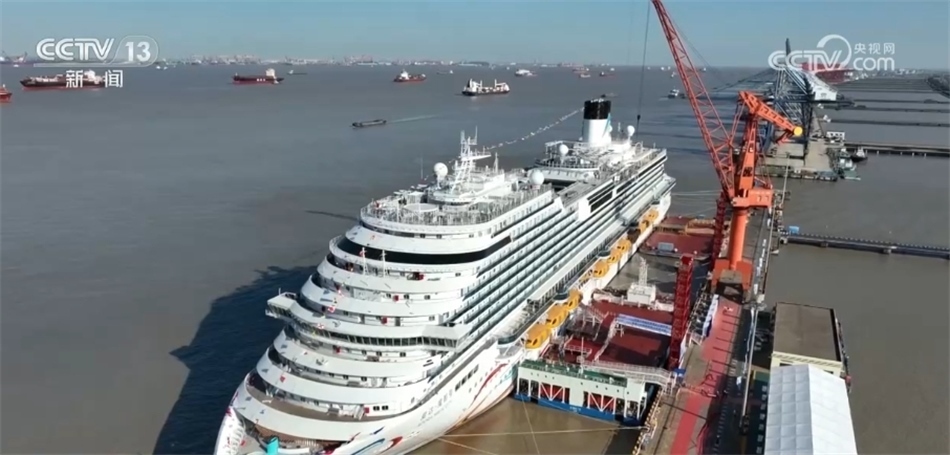在海上,國產第二艘大型郵輪加緊建造,有效帶動了長三角地區(qū)的船舶配套、設計、維修等行業(yè)的進步與發(fā)展。