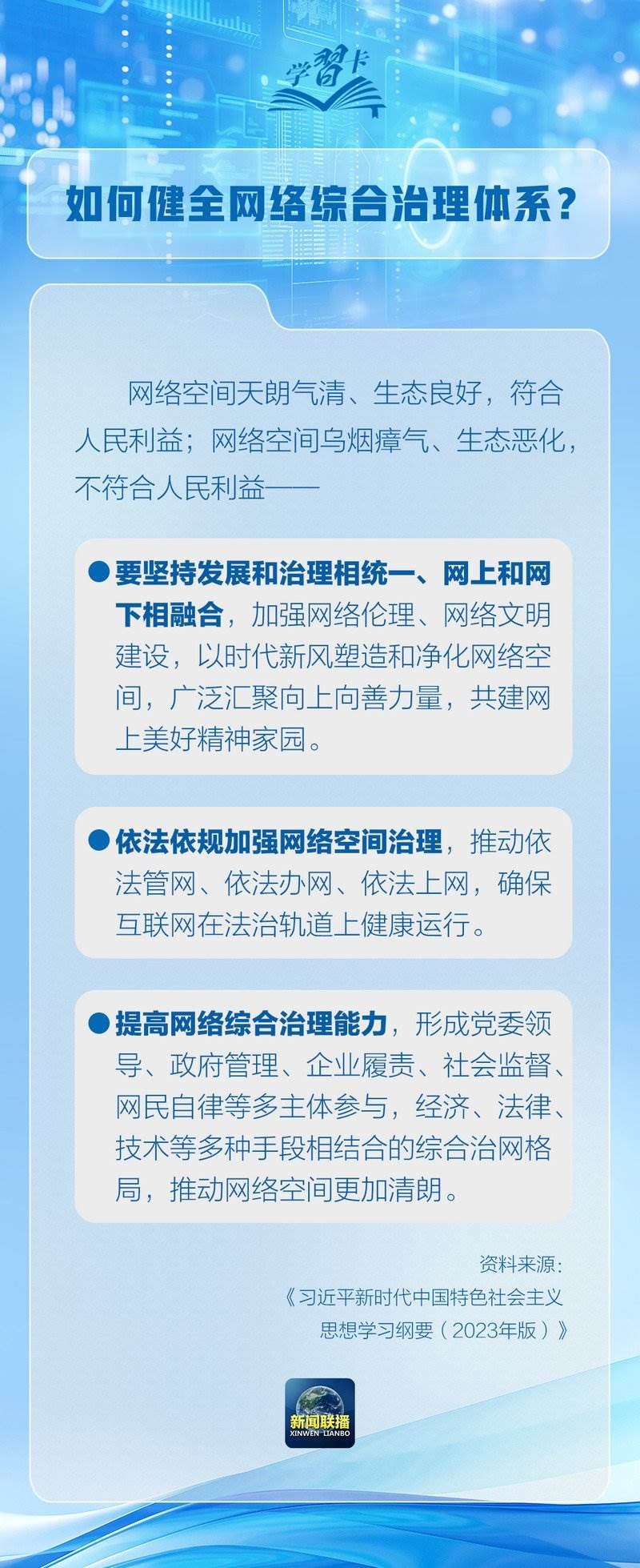 習近平總書記在《關(guān)于〈中共中央關(guān)于進一步全面深化改革、推進中國式現(xiàn)代化的決定〉的說明》中強調(diào)要健全網(wǎng)絡(luò)綜合治理體系。
