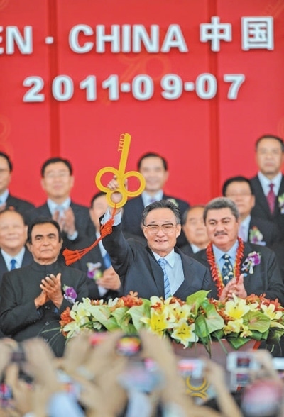 二〇一一年九月七日,吳邦國同志在福建廈門出席第十五屆中國國際投資貿易洽談會開館式。新華社記者 張國俊攝