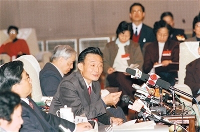 1994年3月,時任上海市委書記的吳邦國同志在全國兩會上海代表團全團會議上。新華社記者 劉建國攝