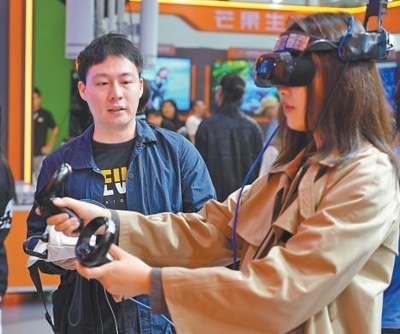 2024中國新媒體技術(shù)展上,參觀者在進(jìn)行AR互動體驗。人民網(wǎng)記者 吳茜薇攝