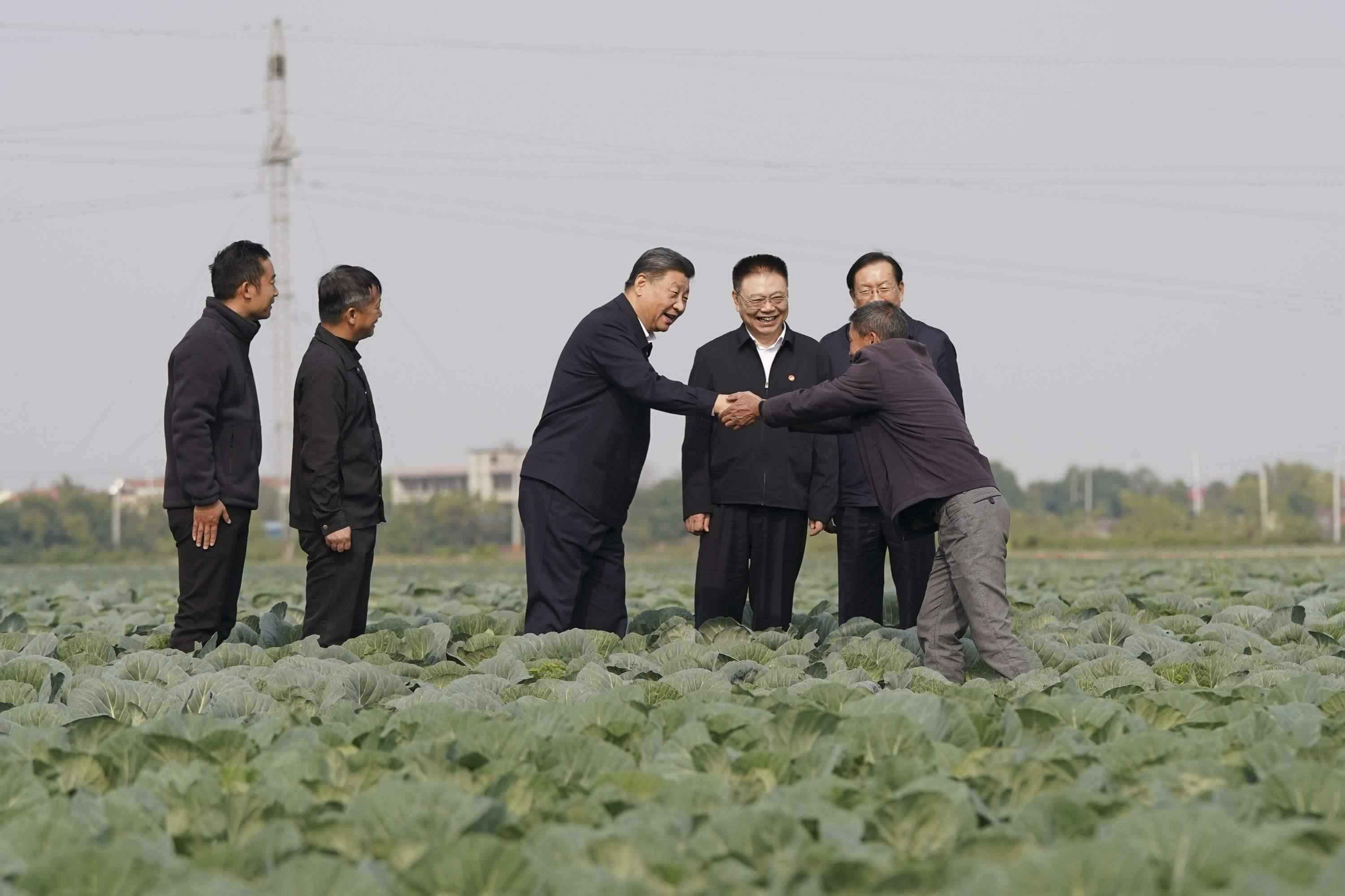 2024年11月5日,湖北省嘉魚縣潘家灣鎮(zhèn)。習(xí)近平總書記來到這里,了解推進鄉(xiāng)村全面振興情況。秋意漸濃,蔬菜長廊一片郁郁蔥蔥,總書記微笑著同村民握手。又一張照片定格。