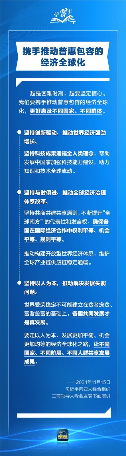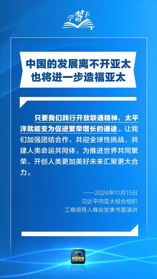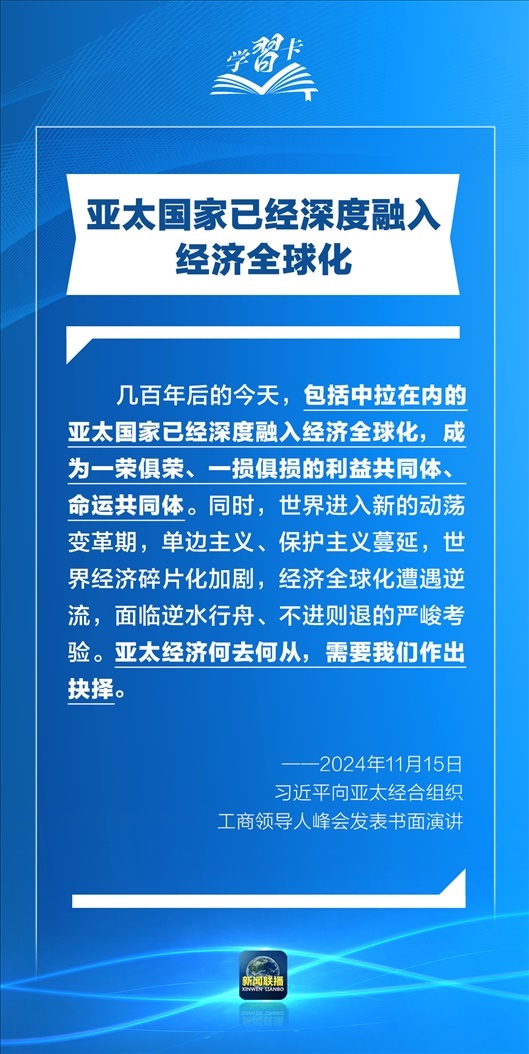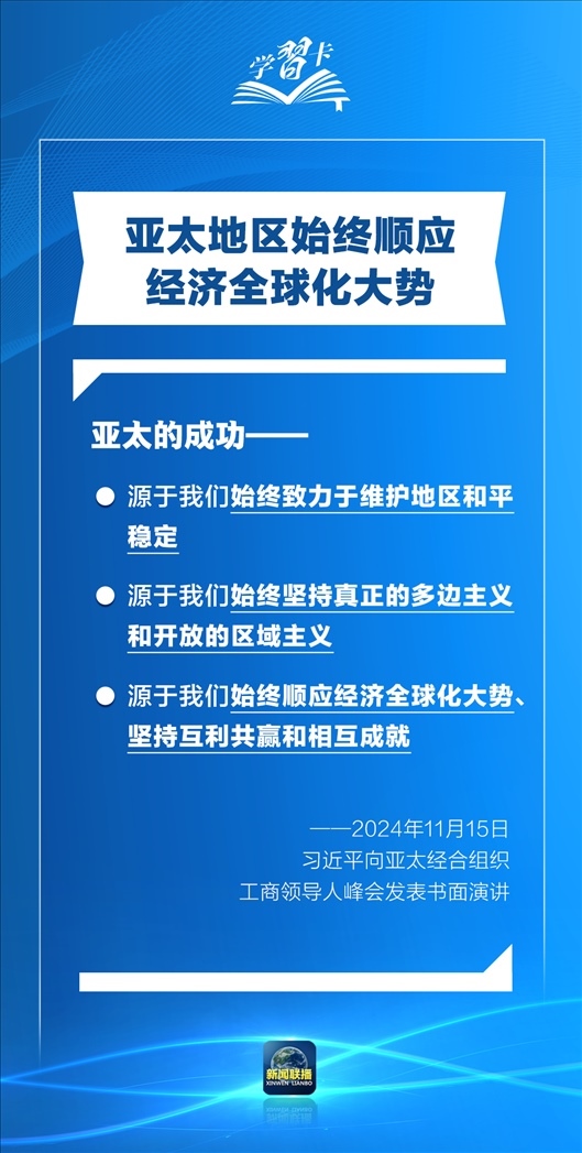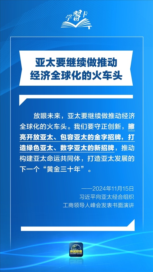 習(xí)近平指出,過(guò)去30年,亞太地區(qū)經(jīng)濟(jì)保持了強(qiáng)勁增長(zhǎng),創(chuàng)造了舉世矚目的“亞太奇跡”。如何推動(dòng)構(gòu)建亞太命運(yùn)共同體,打造亞太發(fā)展的下一個(gè)“黃金三十年”?習(xí)主席強(qiáng)調(diào)了一個(gè)關(guān)鍵詞:經(jīng)濟(jì)全球化。一起學(xué)習(xí)↓
