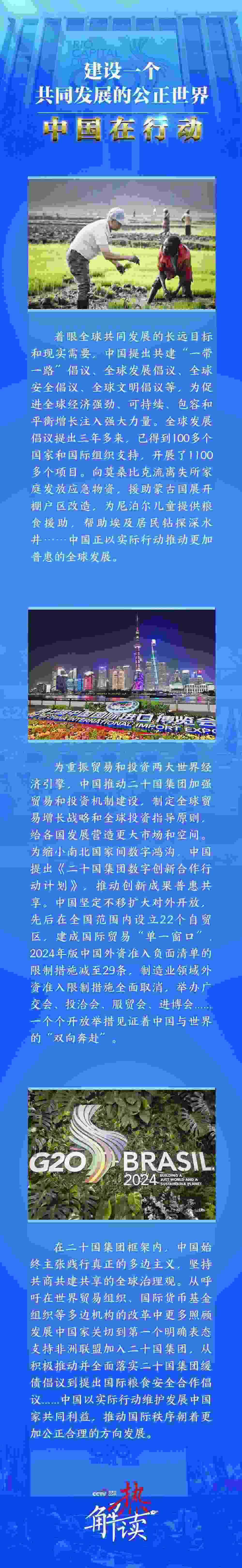 從倡導(dǎo)建設(shè)持久和平、普遍安全、共同繁榮、開放包容、清潔美麗的世界,到弘揚(yáng)和平、發(fā)展、公平、正義、民主、自由的全人類共同價(jià)值;從提出共建“一帶一路”倡議、全球發(fā)展倡議、全球安全倡議、全球文明倡議,到倡導(dǎo)平等有序的世界多極化和普惠包容的經(jīng)濟(jì)全球化……建設(shè)一個(gè)共同發(fā)展的公正世界,中國(guó)的立場(chǎng)、主張始終未變,中國(guó)的行動(dòng)力從未滯后。