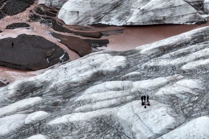 2024年7月25日,在青海省三江源區(qū)冬克瑪?shù)妆ǎ淳C合科學(xué)考察隊員在探測冰川。新華社記者 伍志尊 攝
