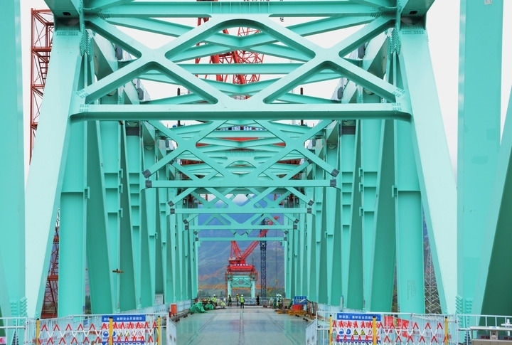 2024年9月5日,工人在川青鐵路重點工程尖扎黃河特大橋現(xiàn)場施工。川青鐵路是我國“八縱八橫”高速鐵路縱向主通道蘭(西)廣通道的重要組成部分。新華社記者 王浡 攝