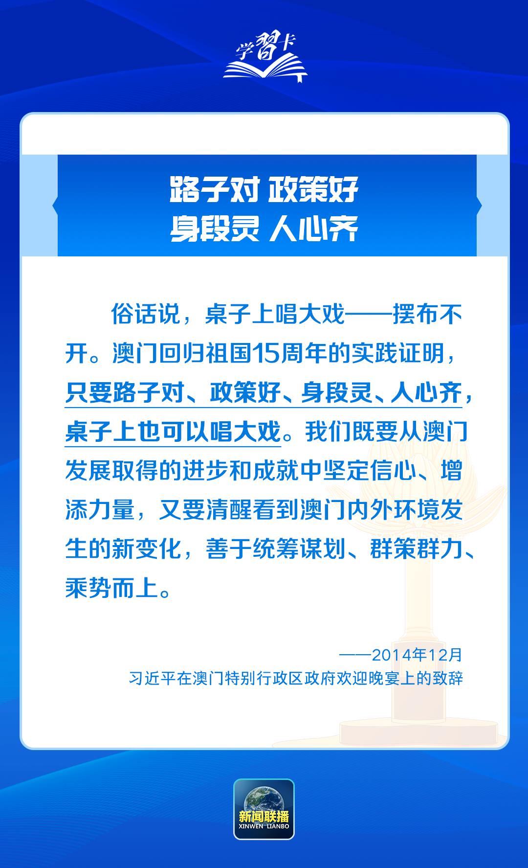習(xí)近平主席一直心系澳門,為澳門全面準(zhǔn)確、堅定不移貫徹“一國兩制”、保持長期繁榮穩(wěn)定指明前進(jìn)方向。