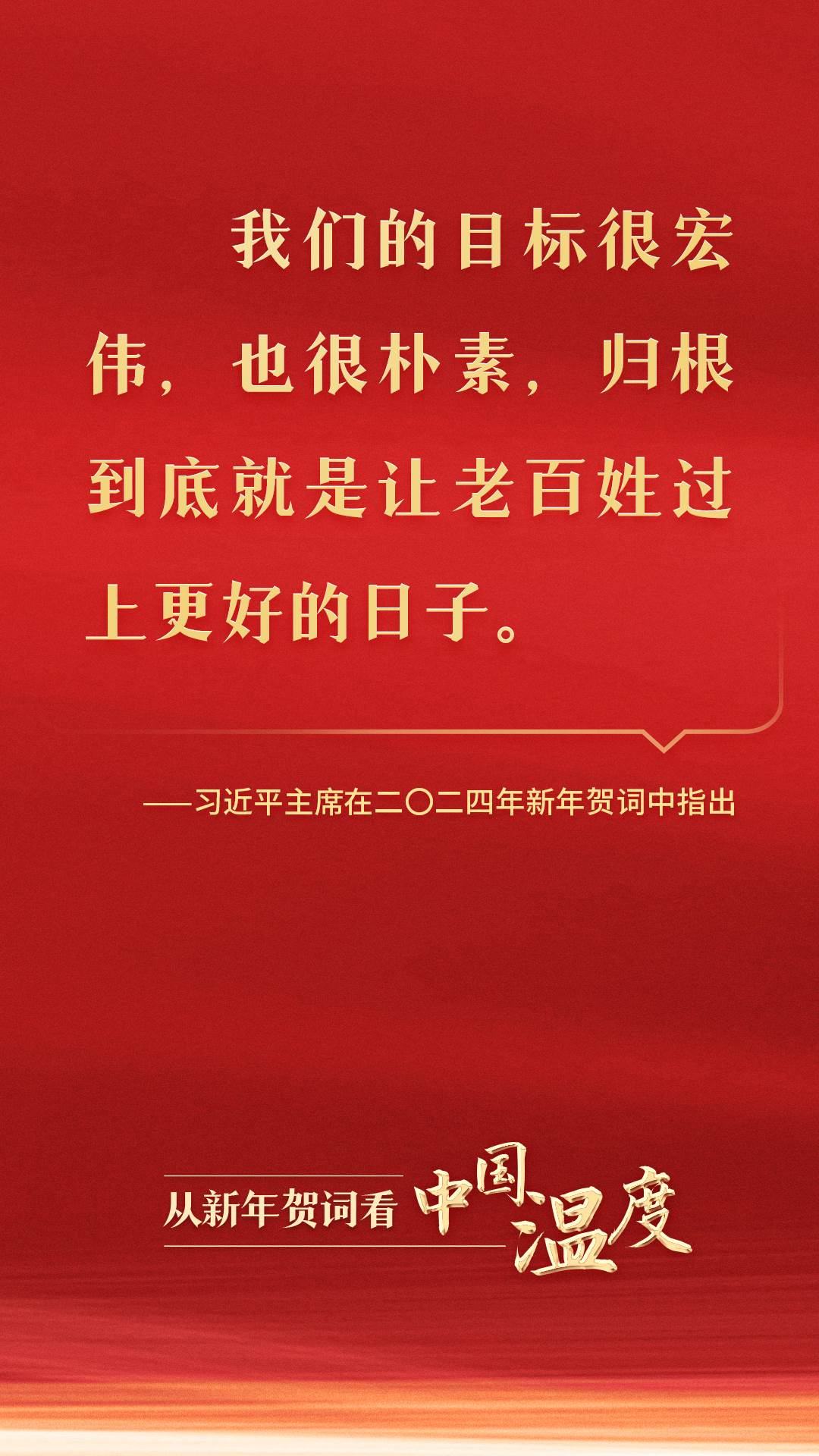 從黃土地走來,從大隊(duì)黨支部書記到黨和國家最高領(lǐng)導(dǎo)人,習(xí)近平同志深諳國情、社情、民情。在二〇二四年新年賀詞中,習(xí)近平主席話語懇切:“我們的目標(biāo)很宏偉,也很樸素,歸根到底就是讓老百姓過上更好的日子?!?/p>