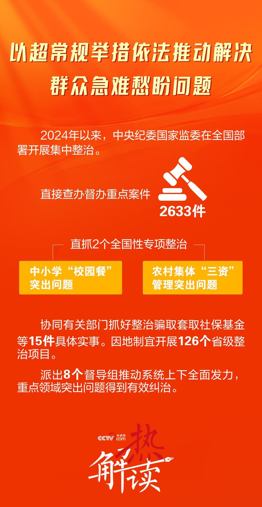 2024年1月8日,在二十屆中央紀委三次全會上,習近平總書記明確要求懲治“蠅貪蟻腐”,讓群眾有更多獲得感。全會強調(diào)瞄準教育、就業(yè)、醫(yī)療等民生領域的痛點難點開展集中整治。此次召開的二十屆中央紀委四次全會,更加明確民生領域腐敗問題整治方向——聚焦“縣以下這一關鍵環(huán)節(jié)、薄弱環(huán)節(jié)”,直達正風肅紀反腐“最后一公里”。