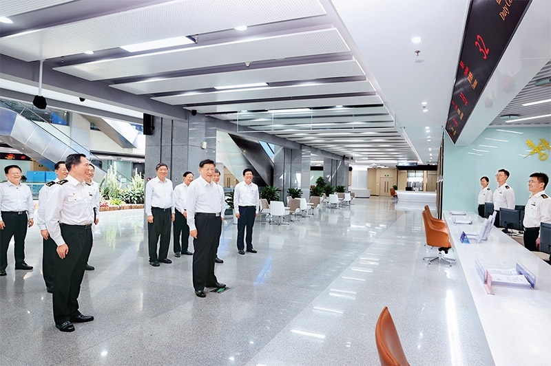 2024年10月15日至16日,中共中央總書記、國(guó)家主席、中央軍委主席習(xí)近平在福建考察。這是16日上午,習(xí)近平在中國(guó)(福建)自由貿(mào)易試驗(yàn)區(qū)廈門片區(qū)考察時(shí),同綜合服務(wù)大廳窗口工作人員親切交流。 新華社記者 鞠鵬/攝