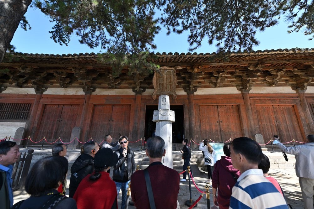 位于山西五臺縣的佛光寺東大殿,是我國現(xiàn)存珍稀唐代木結(jié)構(gòu)建筑中規(guī)模最大、保存最完整的一座,也是世界文化遺產(chǎn)五臺山的重要組成部分。這是2024年10月11日,游客在佛光寺東大殿參觀。