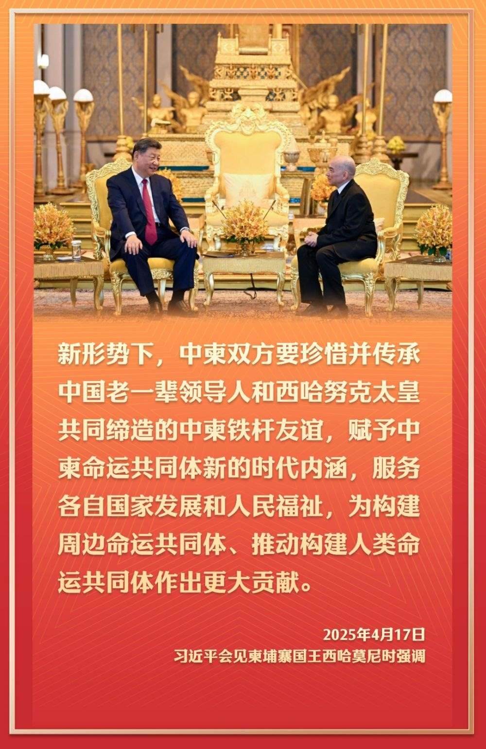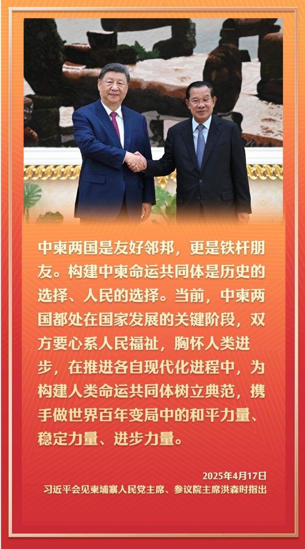 4月17日,應柬埔寨國王西哈莫尼邀請,國家主席習近平抵達金邊,開始對柬埔寨進行國事訪問。