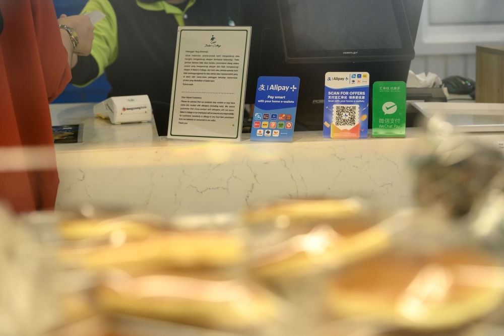 2025年4月10日,馬來西亞吉隆坡的一家店鋪展示可供顧客數字支付的方式。