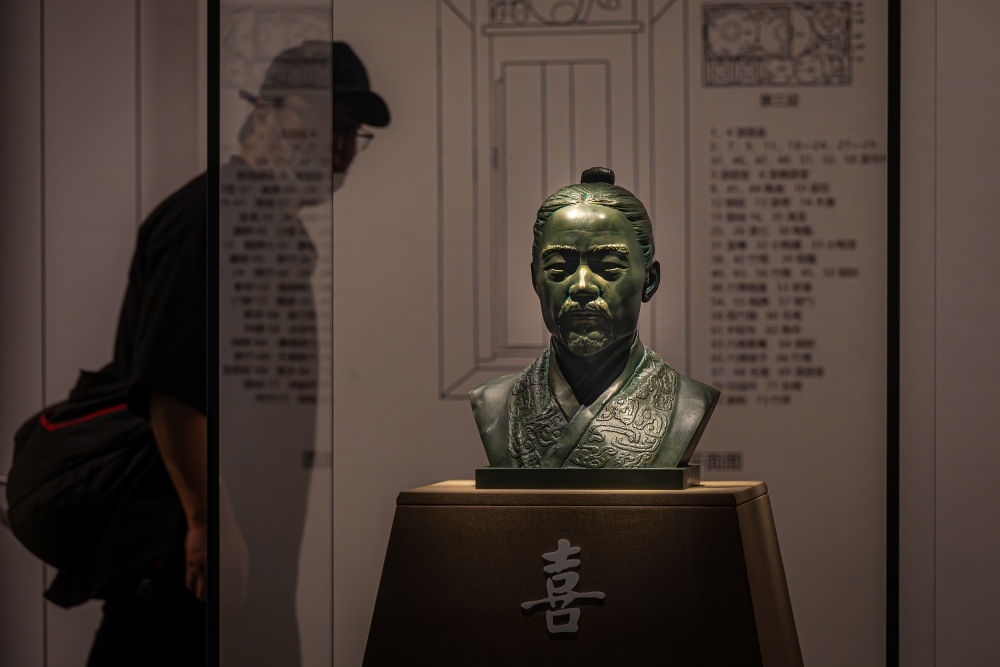 2024年4月30日,游客在湖北省博物館觀看云夢睡虎地秦簡主人“喜”的3D復(fù)原頭像。 當(dāng)日,湖北省博物館策劃的專題展覽“惠此簡書——睡虎地秦墓出土簡牘”開幕,首次展出科技考古研究成果——“喜”的3D復(fù)原頭像。